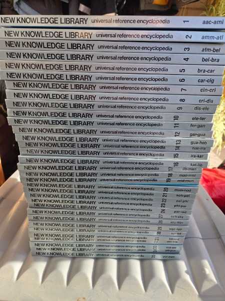 34 Encyclopedias from early 80s. set of 35 new knowledge library with 2 missing from set. plus one separate from similar year. could be used for bookfold art, or just used for the images. to collect from Wyre Piddle but could deliver in Pershore area only.