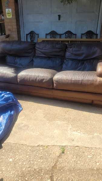 Leather 3 seater plenty of life left no splits or cracks in the leather very good grade leather very heavy