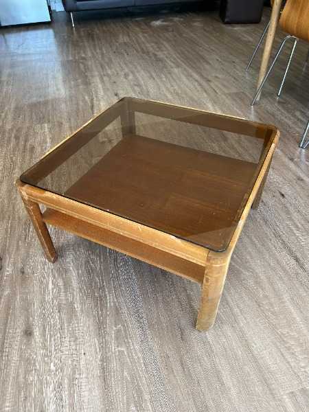 Coffee table with magazine shelf and smoked glass top. 60cm x 60cm. 35cm in height.