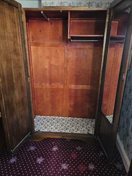 Large vintage double wardrobe, half shelf at top with 2 hanging spaces. comes apart if need for tra…